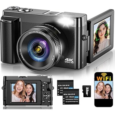 4K Digital Camera for Photography Autofocus, Upgraded 64MP WiFi Vlogging Camera for YouTube with 3" 180° Flip Screen